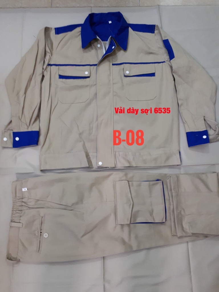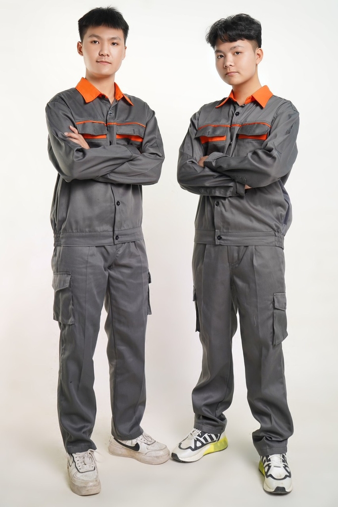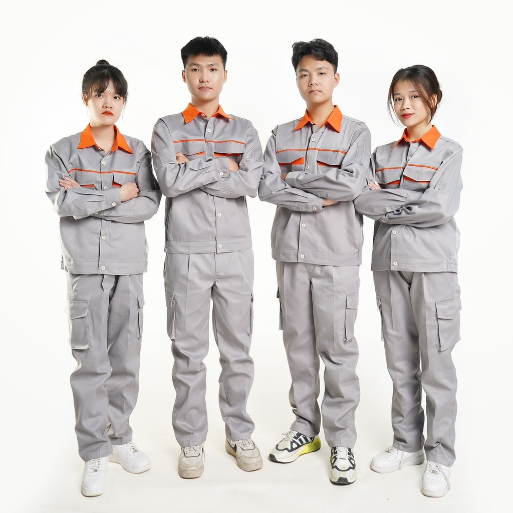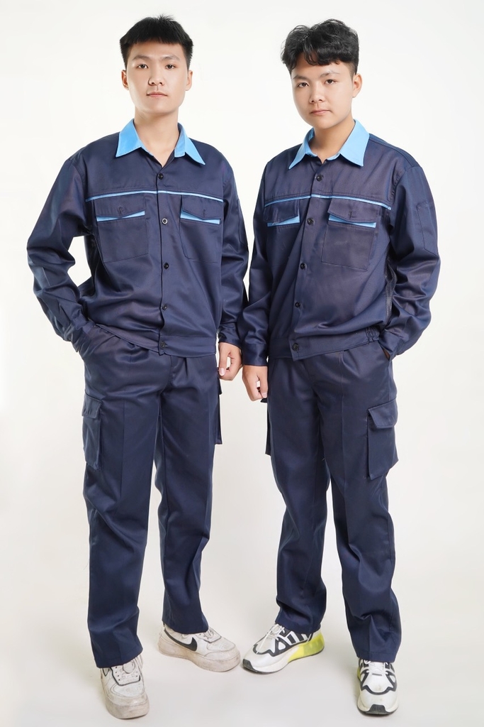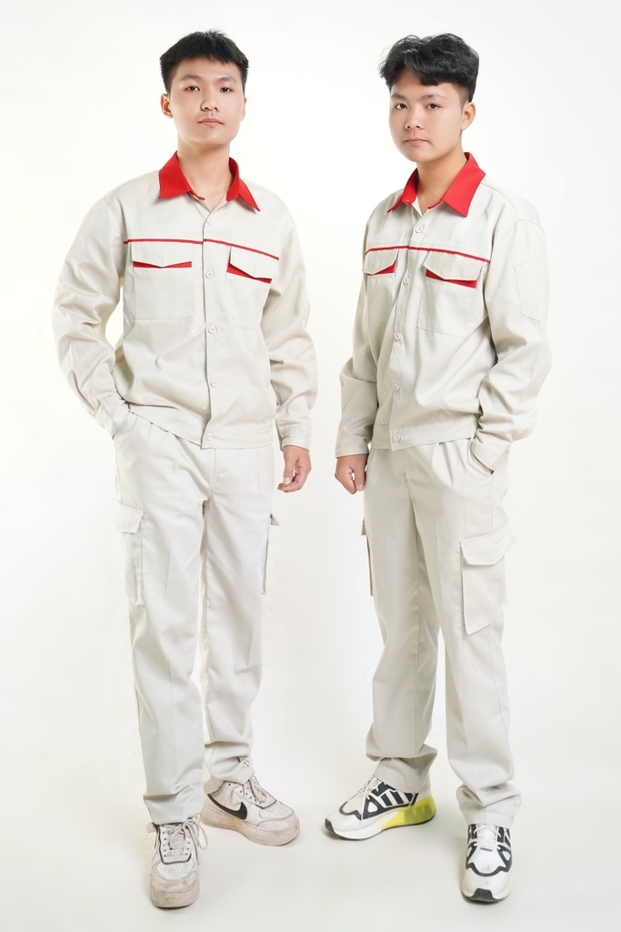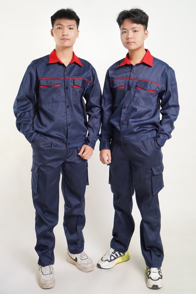 Quần có túi hộp, áo có khóa kéo hoặc cài cúc tùy khách lựa chọn.
