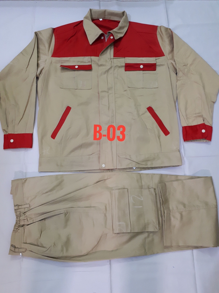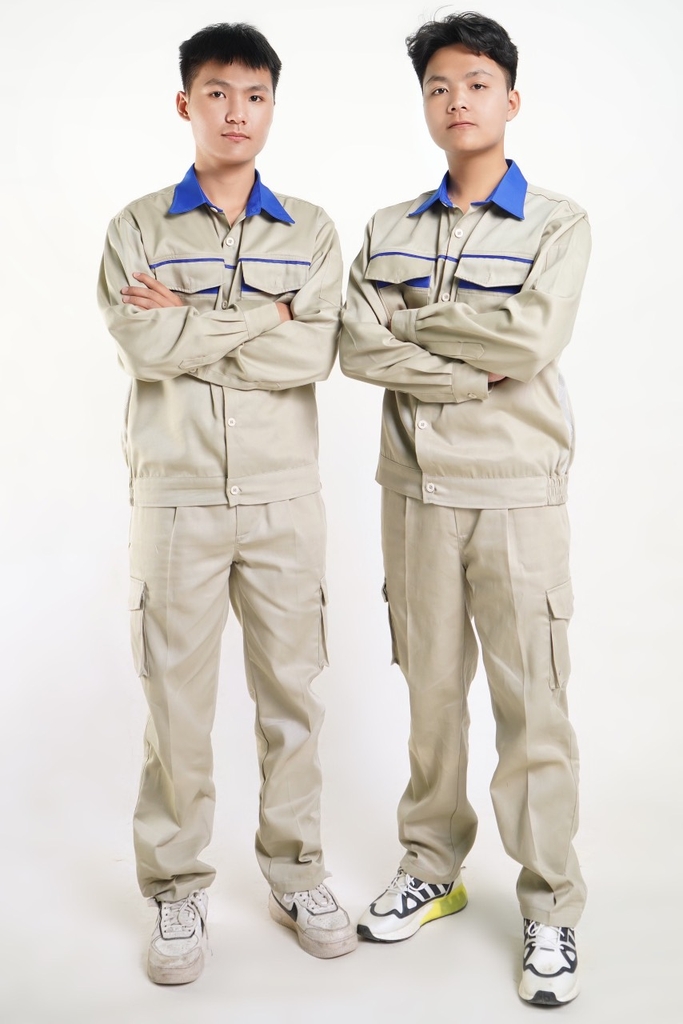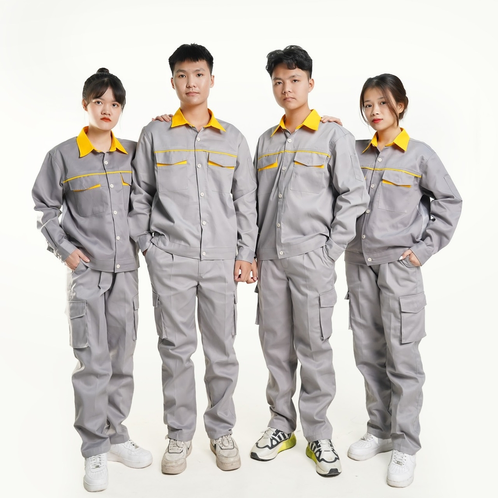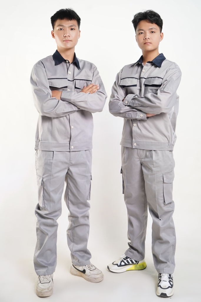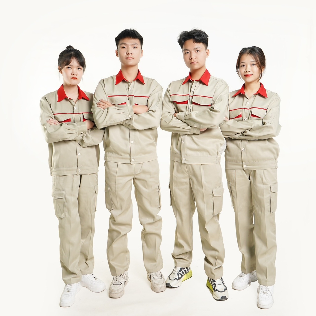 Quần có túi hộp, áo có khóa kéo hoặc cài cúc tùy khách lựa chọn.