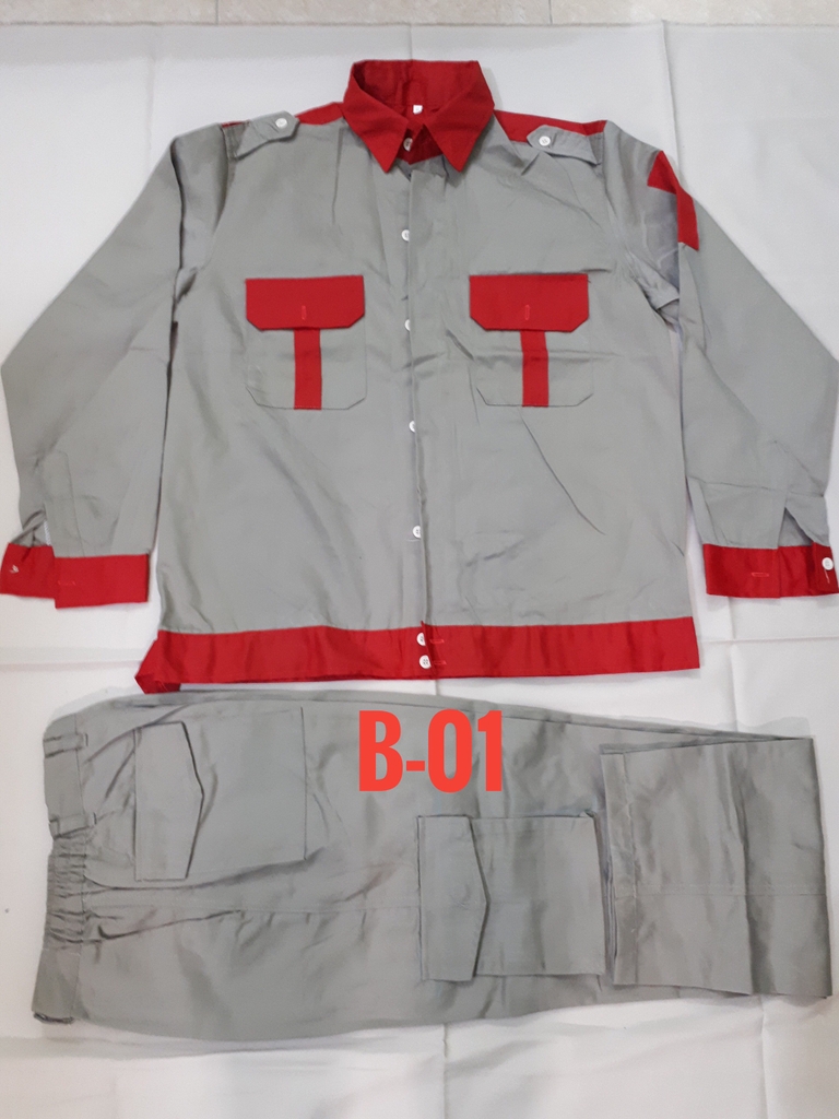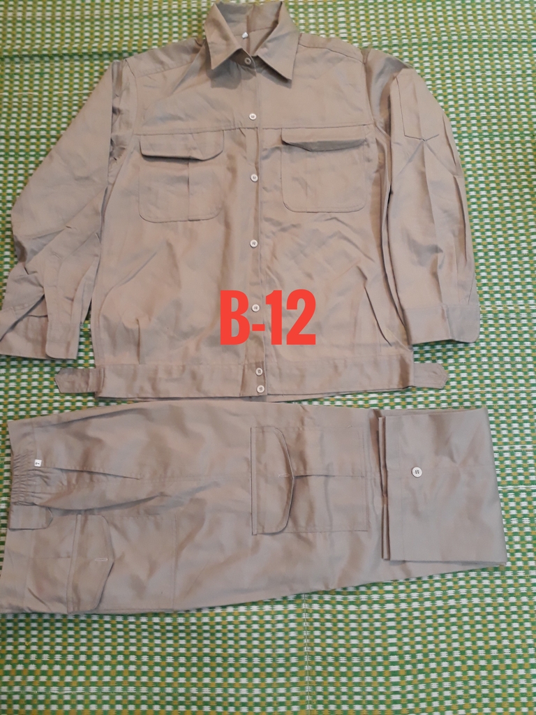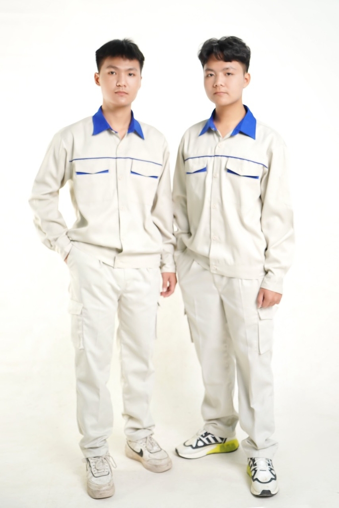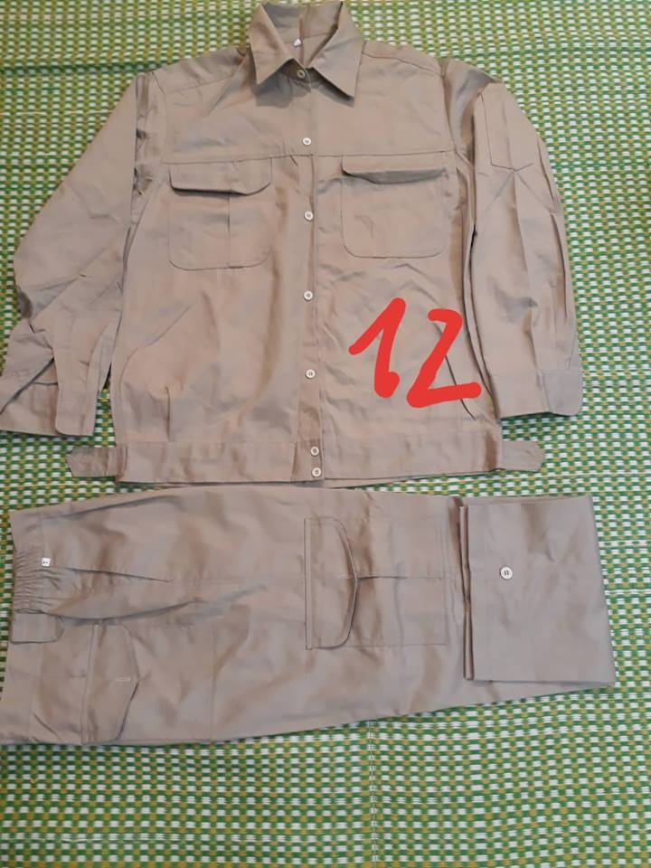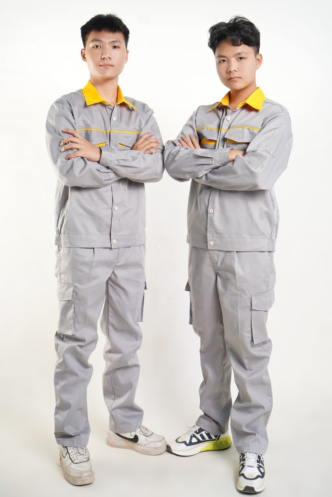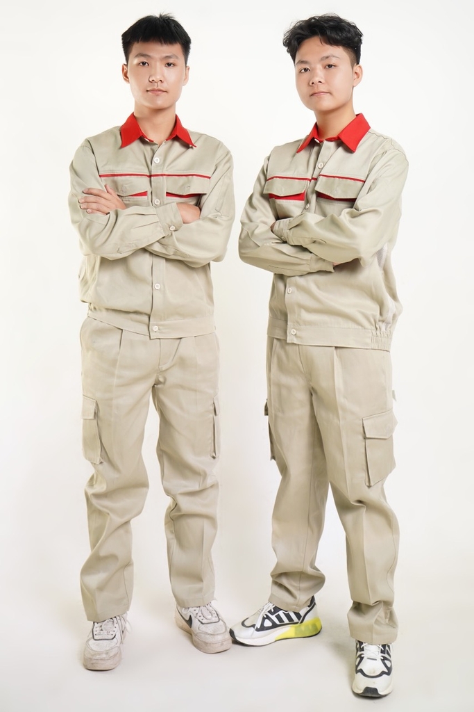 Quần có túi hộp, áo có khóa kéo hoặc cài cúc tùy khách lựa chọn.