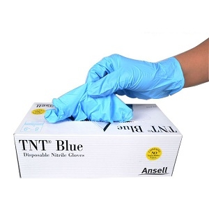 Găng tay chống hóa chất Ansell làm từ Nitrile 100%, màu xanh nhạt, không bột