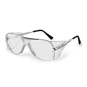 Kính cận bảo hộ gọng kim loại với tấm bảo vệ bên hông mắt và vòng mũi.