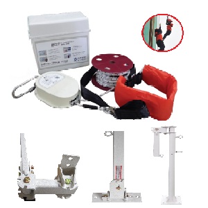 Cấu trúc: 01 giá treo tường, 01 hộp giảm tốc, 01 cuộn cáp thép bọc sợi chống cháy, 02 đai đeo người, 01 hộp bảo quản